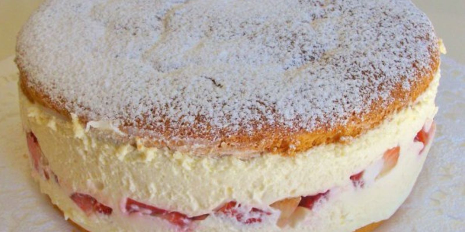 - Vor dem Servieren die Erdbeeren auf der Käsesahne verteilen. (Before serving, distribute the strawberries on top of the cheese cream.)