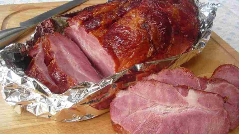 1. So geht es: Den Braten abtupfen und auf die Alufolie legen. Die Alufolie an den Seiten zusammendrehen, sodass eine Art “Schiffchen” entsteht. Die Alufolie sollte oben offen sein. Den Braten samt Alufolie in den vorgeheizten Backofen schieben.