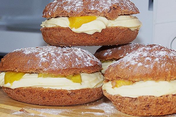 Die erkalteten Donuts durchschneiden, mit der Creme füllen und mit Puderzucker bestäuben. Die gefüllten Ringe kühl stellen, sie schmecken am besten, wenn sie ein paar Stunden durchziehen konnten.