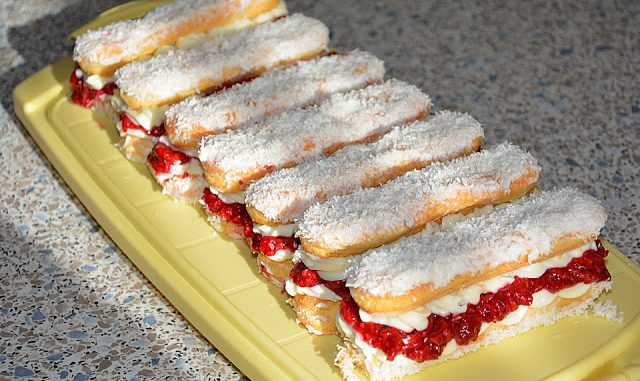 Nun auf die Zuckerseite der Löffelbiskuits aufspritzen und jeweils 2 Löffelbiskuits zusammenkleben.