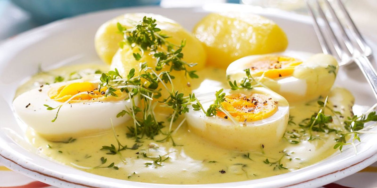 - Senfeier servieren: Die Senfsoße auf vorgewärmten Tellern oder einer Servierplatte verteilen. Die gekochten Eier halbieren und auf der Soße anrichten.