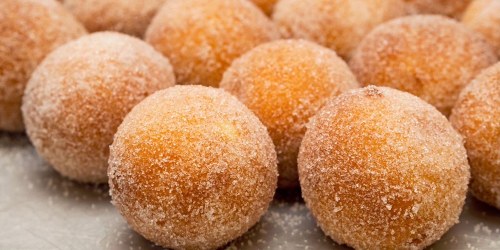 5. Kleine Bällchen (ca. 4-5 cm Größe) aus dem Teig formen und in das heiße Fett goldbraun ausbacken.