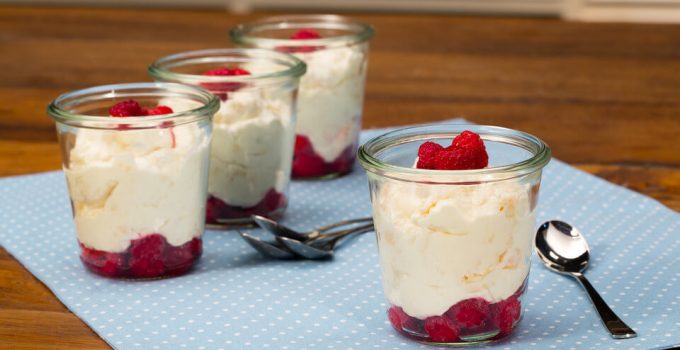 Die gefrorenen Himbeeren in eine Schüssel geben und mit der Raffaellomasse bedecken. Dann bis zum Verzehr gut 5 Stunden stehen lassen, die Himbeeren tauen dabei langsam auf.