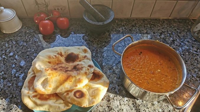 Den Knoblauch und die Zwiebeln schälen und in feine Würfel schneiden. Das Öl in einem Topf erhitzen. Knoblauch und Zwiebeln darin anschwitzen. Die Linsen zugeben und unter Wenden kurz mitdünsten. Mit Tomaten aus der Dose, Kokosmilch und Brühe ablöschen. Alles aufkochen und 20 Minuten köcheln lassen.