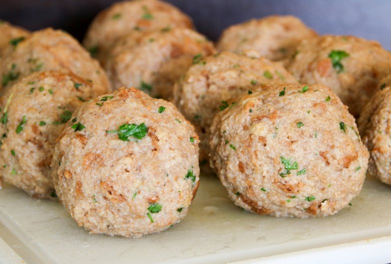 - Nun die Hände mit Wasser anfeuchten und aus der Masse gleichgroße Knödel formen.