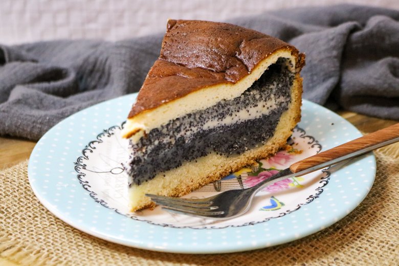 3. Anschließend die Mohnmischung gleichmäßig auf dem Kuchenboden verteilen.