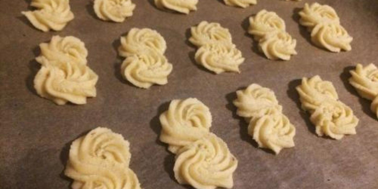 Heizen Sie den Backofen auf 180 Grad Celsius vor. Legen Sie ein Backblech mit Backpapier aus. Nun spritzen Sie den Teig in verschiedenen Formen auf das Backblech. Herzen, Sterne oder einfache Spiralen – Ihrer Kreativität sind keine Grenzen gesetzt.