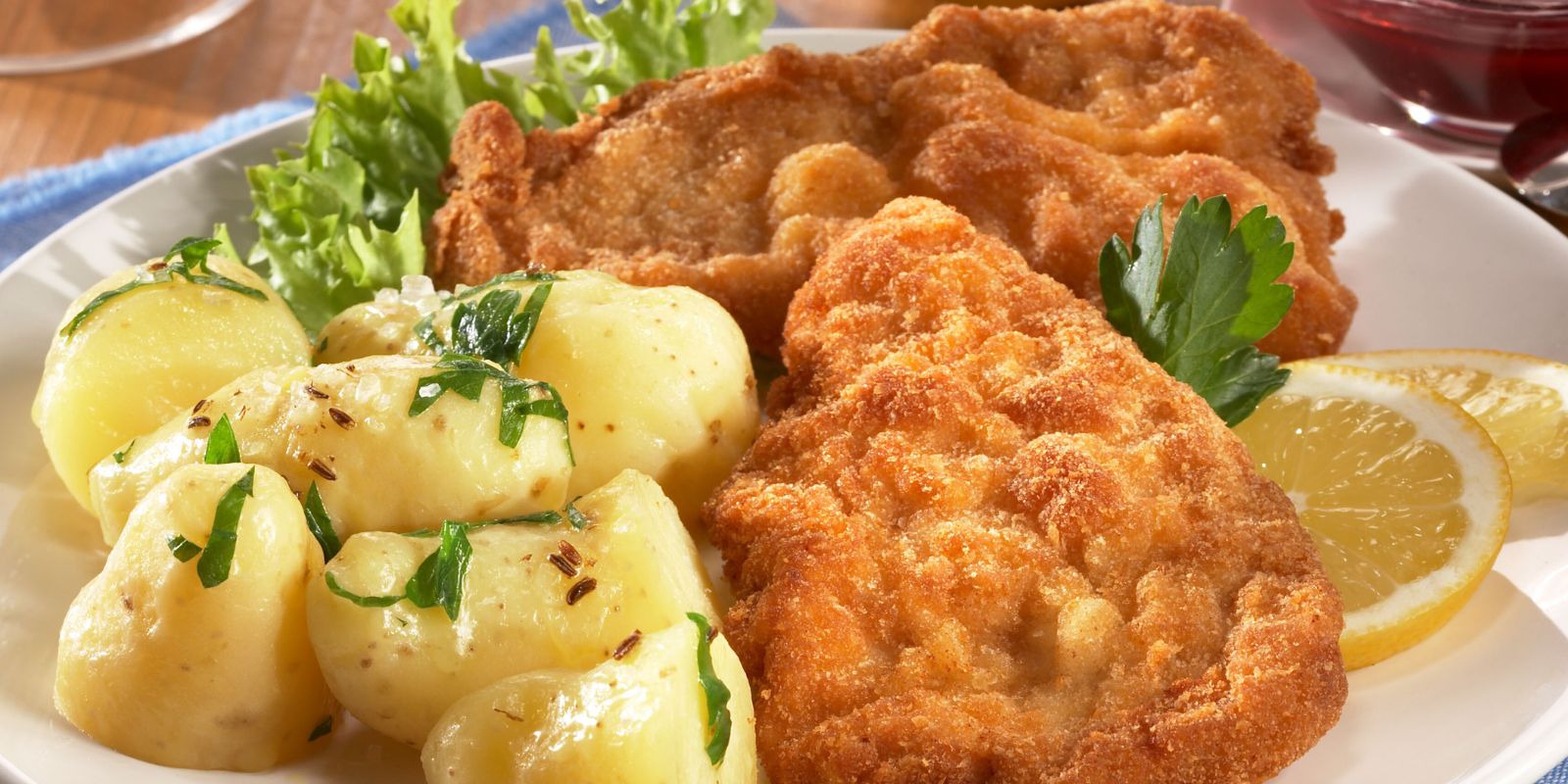 - Die Wiener Schnitzel auf warmen Tellern anrichten. Mit Zitronenspalten garnieren und mit frischer Petersilie bestreuen.