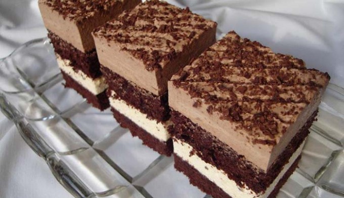Die so vorbereitete Creme auf den Kuchen geben und glatt streichen. Lassen Sie den Kühlschrank ca. 5 Stunden abkühlen (vorzugsweise über Nacht). Dekorieren Sie das Top selbst – zB geriebene Schokolade. Guter Geschmack!