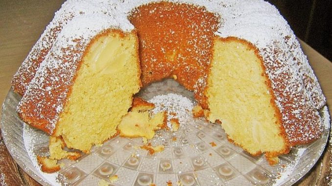 Den fertigen Kuchen mit Zimt/Zucker bestreuen oder mit Zitronenglasur bestreichen.