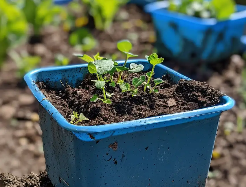5. Erde und Pflanze: Füllen Sie den Behälter mit einer hochwertigen Blumenerde, die reich an organischen Stoffen ist. Wählen Sie Pflanzen, die zu Ihrem Klima und Ihrer Behältergröße passen, von Kräutern und Blattgemüse bis hin zu farbenfrohen einjährigen Pflanzen.