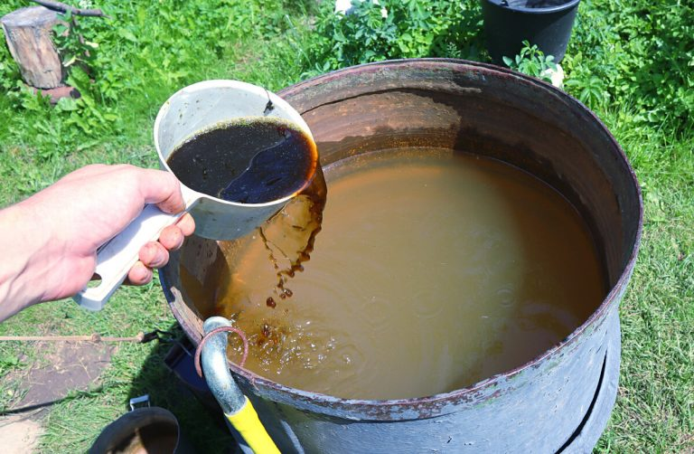 Dies ersetzt einen ganzen KAMAZ-Müllwagen. Ich verdünne diesen Dünger in einem 200-Liter-Fass und gieße ihn. Gemüse wird groß und gesund
