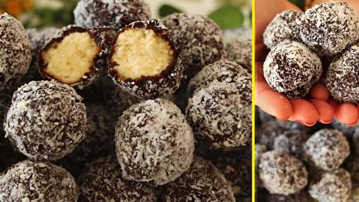 - Banhe os bolinhos na calda “morna”, empane no coco ralado e disponha numa travessa.