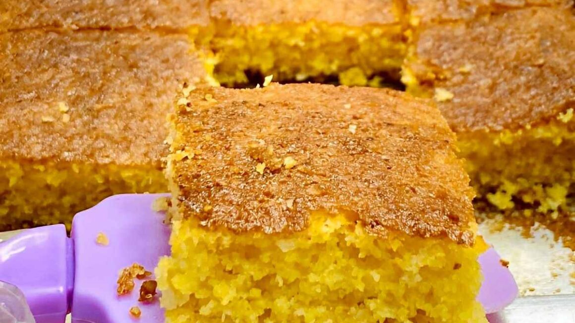 - Retire do forno, corte em quadrados e se delicie com esse espetáculo de bolo de flocão!