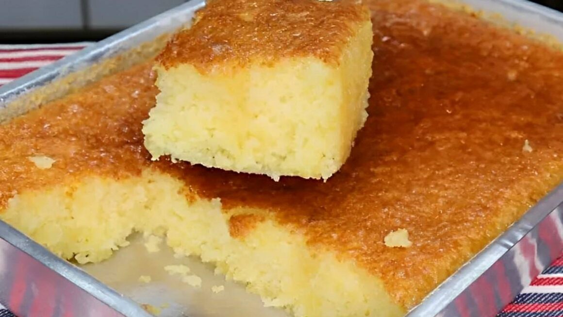 - Transfira a massa para uma forma retangular (32cm x 22cm) que já esteja untada e enfarinhada. Leve ao forno pré-aquecido a 180°C para assar durante uns 35 minutos.