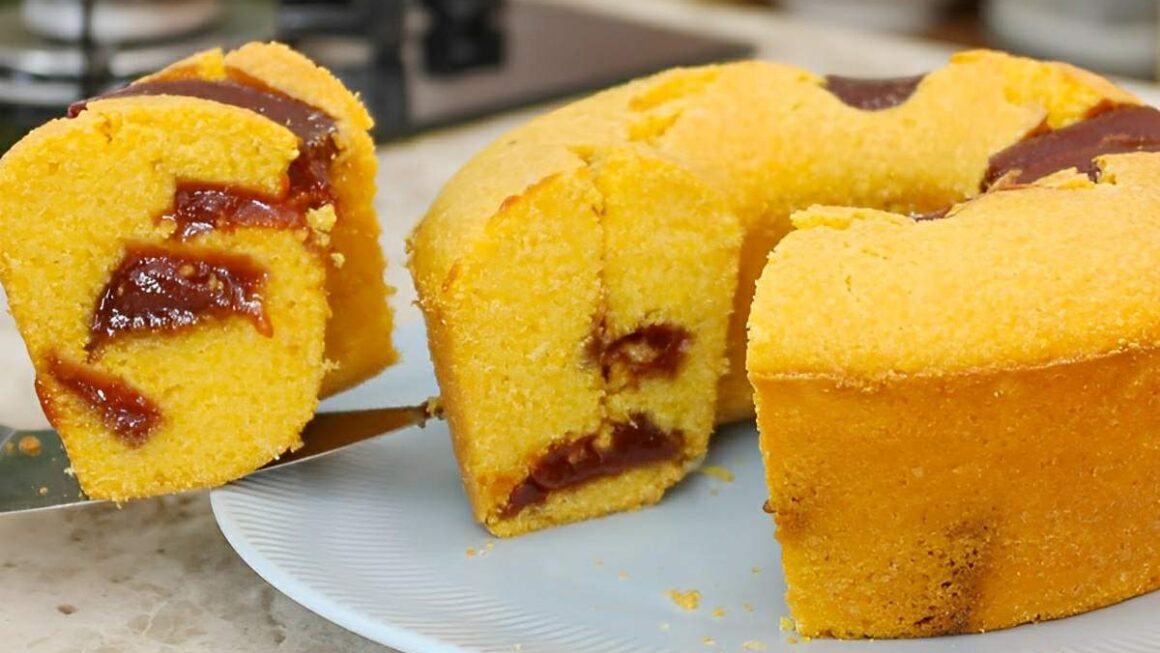 - E agora é só se deliciar com esse maravilhoso bolo de milho com goiabada!