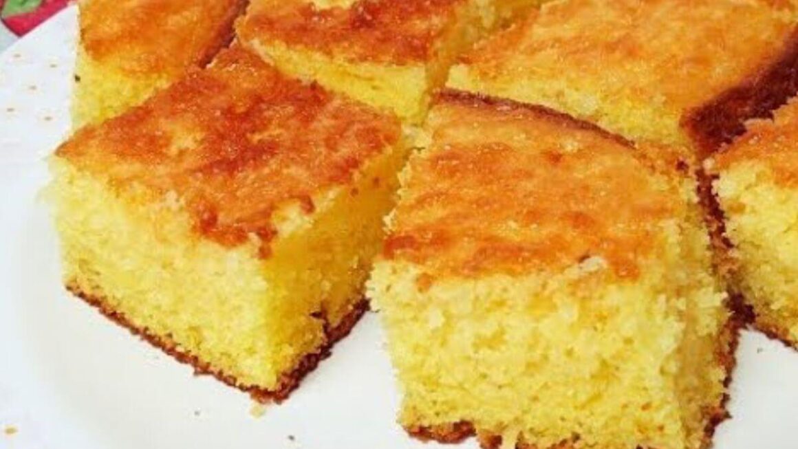 - Retire do forno, deixe amornar, corte em quadrados e sirva esse lindo bolo simples!