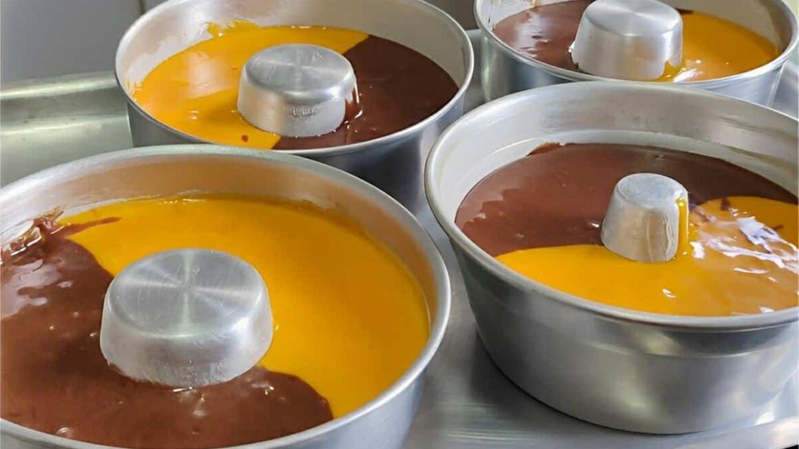 Para fazer bolo dois sabores iremos utilizar ovos, óleo, leite, fermento em pó, açúcar e farinha de trigo. Vamos bater no liquidificador os ingredientes da massa do bolo dois sabores, exceto a farinha de trigo e fermento em pó que serão misturados por último com um fouet. Em seguida iremos dividir a massa do bolo dois sabores em duas partes e adicionar corante amarelo em uma delas e na outra chocolate 50% cacau. Dispor a massa nas formas de furo central untada e enfarinhada, seguindo o passo a passo, e assar óbolo dois sabores por aproximadamente 60 minutos em forno pré-aquecido a 160 graus. Retirar do forno, servir para usa família e receber muitos elogios!