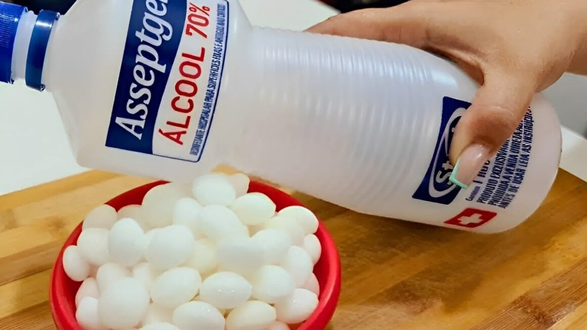 Para te ensinar como acabar com as baratas vamos usar ingredientes que são comuns na nossa despensa. São eles naftalina, água, bicarbonato de sódio, álcool líquido 70°, detergente neutro, e essência. Nessa dica de como acabar com as baratas, prepararemos uma espécie de limpador multiuso que também repele as baratas, principalmente por conta da naftalina, que tem um cheiro que as baratas detestam. O bicarbonato potencializa e limpeza do detergente, o álcool higieniza as superfícies em que ocorre a aplicação e a essência dá um cheirinho incrível!