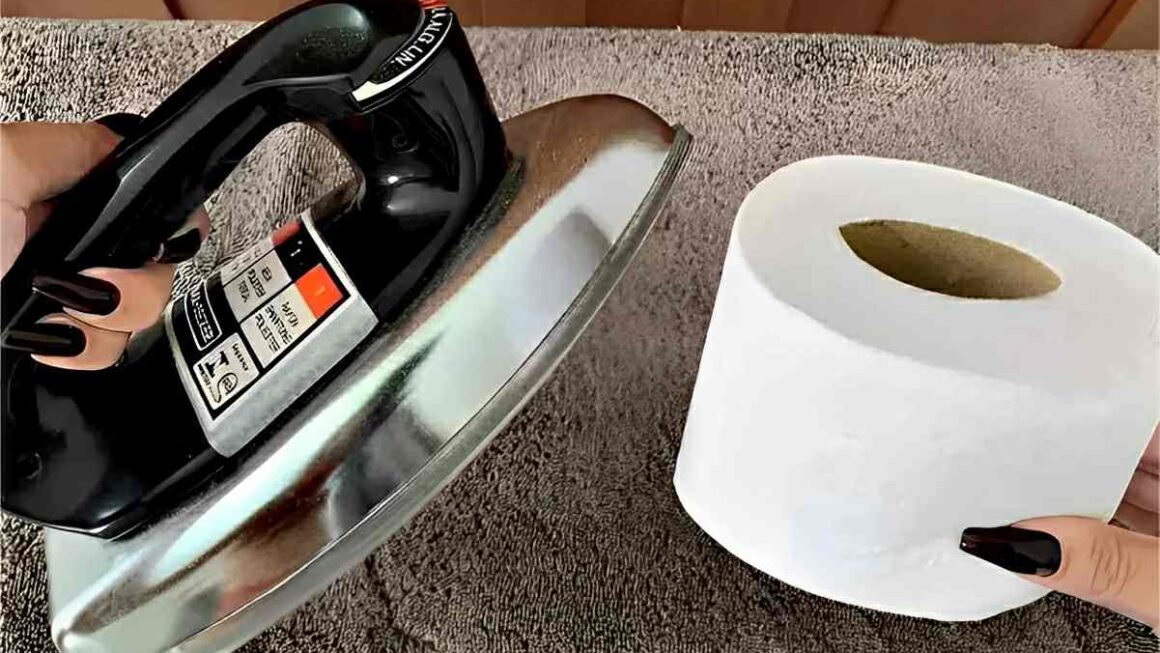 - Por cima do papel higiênico, vá passando um ferro de passar quente durante uns segundos e o calor do ferro vai vedar a embalagem.