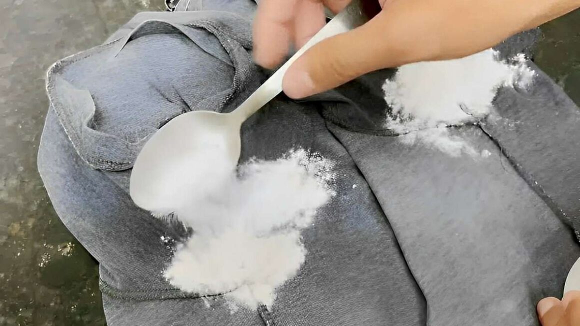 - Coloque a roupa sobre um recipiente e espalhe o bicarbonato de sódio na região das axilas.