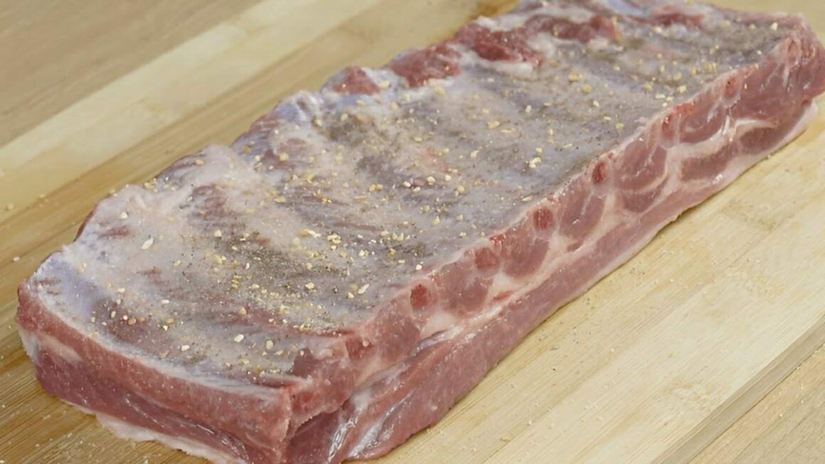 - Em seguida, tempere com sal, espalhando-o bem por toda a costelinha.