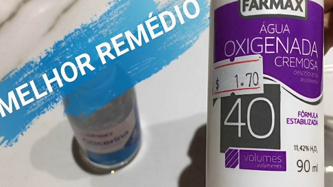 - Acrescente a água oxigenada 40 volumes e a glicerina líquida e misture bem.