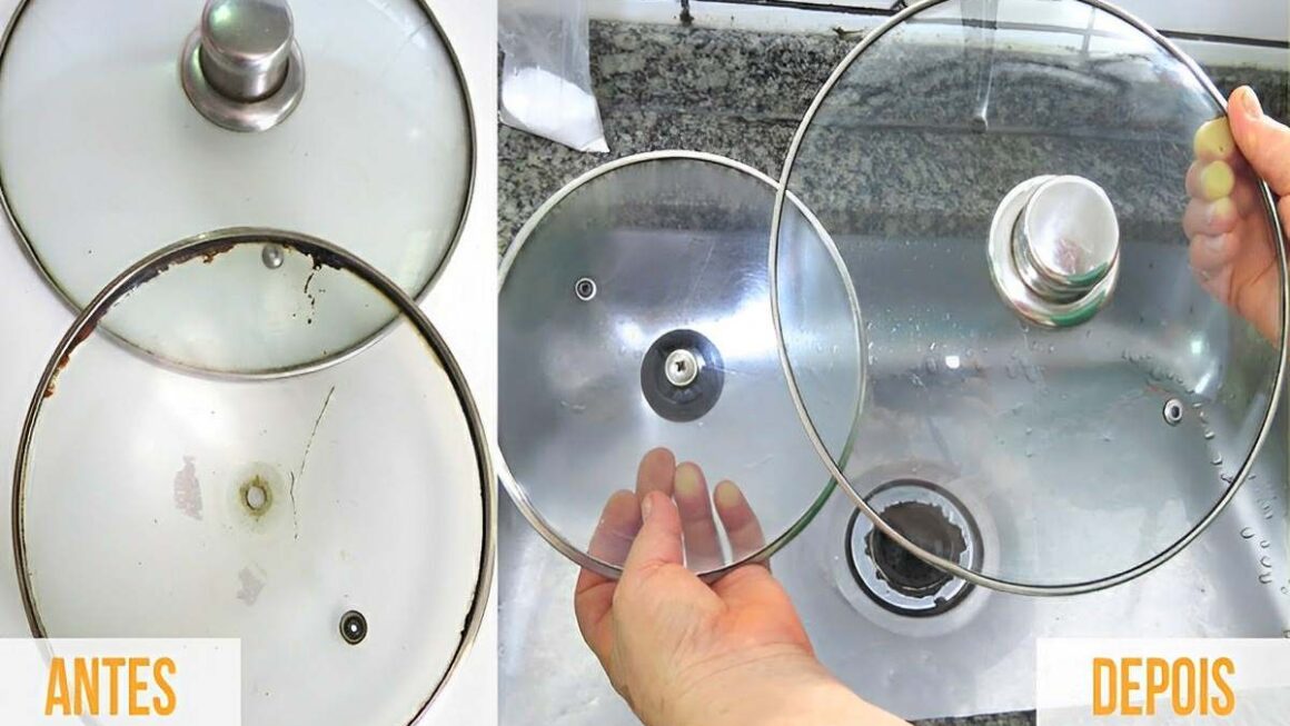 - Agora é só se maravilhar com o resultado dessa incrível dica para limpar tampas de vidro de panelas!