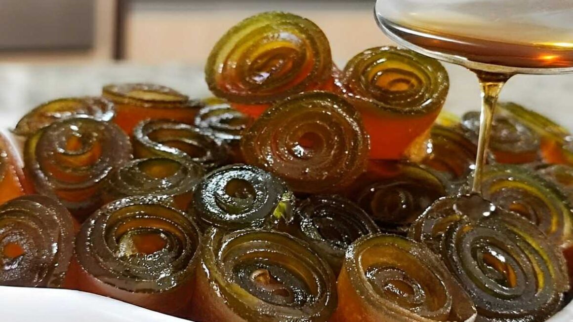 - O doce estando frio, vá retirando os “colares” da calda e corte a linha, soltando todos os rolinhos e passando-os para uma travessa. Reserve a calda da panela.