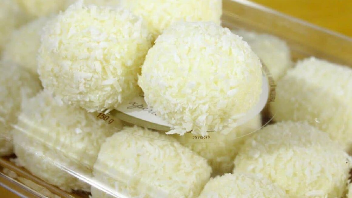 - Após esse tempo, retire porções da massa com uma colher e enrole, fazendo bolinhas com as mãos e passando no coco ralado. Faça isso até acabar a massinha.