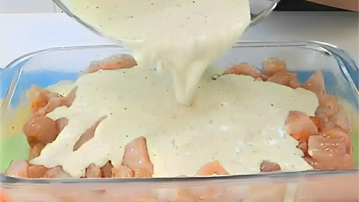 - Mexa todos os ingredientes cuidadosamente e derrame esse creme por cima do frango, no refratário.