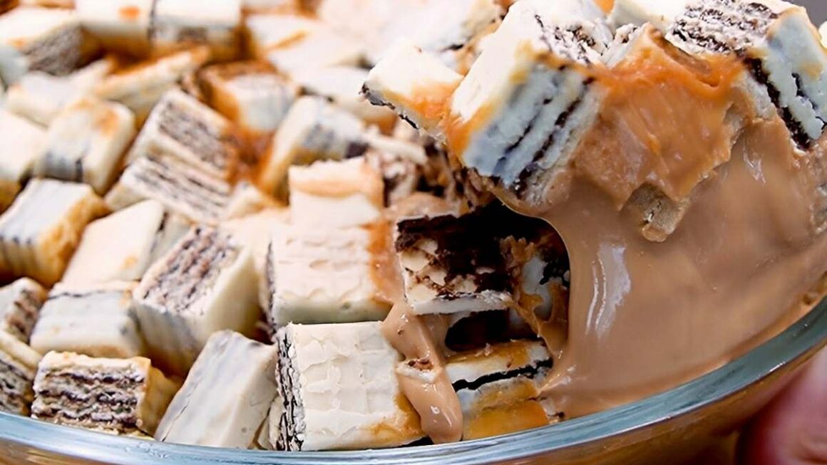 Para fazer essa sobremesa vamos precisar de creme de leite, doce de leite bis branco. Iremos misturar numa travessa os ingredientes da sobremesa deixando para adicionar o bis branco por último. Em seguida vamos levar a sobremesa para gelar por 12 horas. Depois desse tempo, iremos retirar da geladeira e saborear cada porção deliciosa dessa incrível sobremesa!