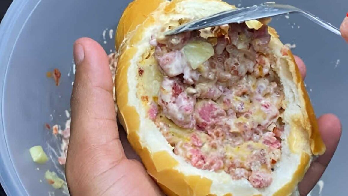5. Pegue os pães franceses e retire uma “tampa” da parte de cima de cada um deles. Passe os dedos nessa cavidade, amassando bem, preparando esse pão para receber o recheio.