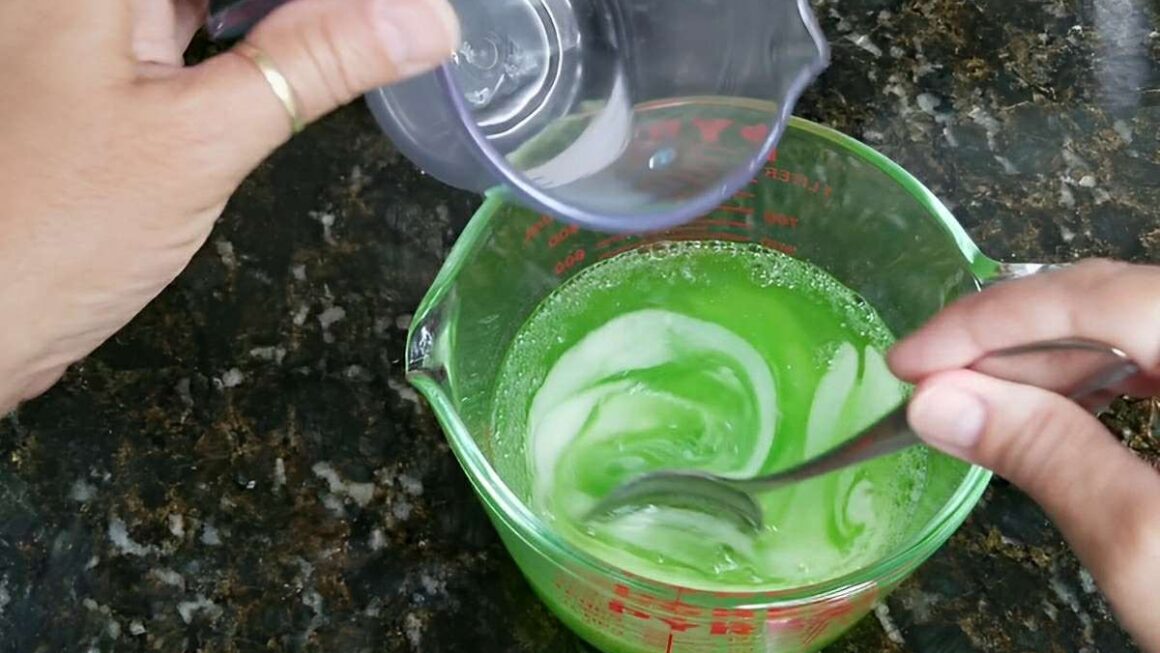 - Em uma tigela, coloque a água e o detergente e misture bem.
