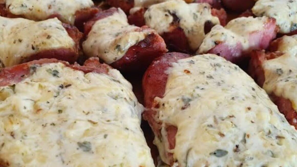- Retire, sirva e desfrute dessa maravilha de linguiça recheada! Bom apetite!