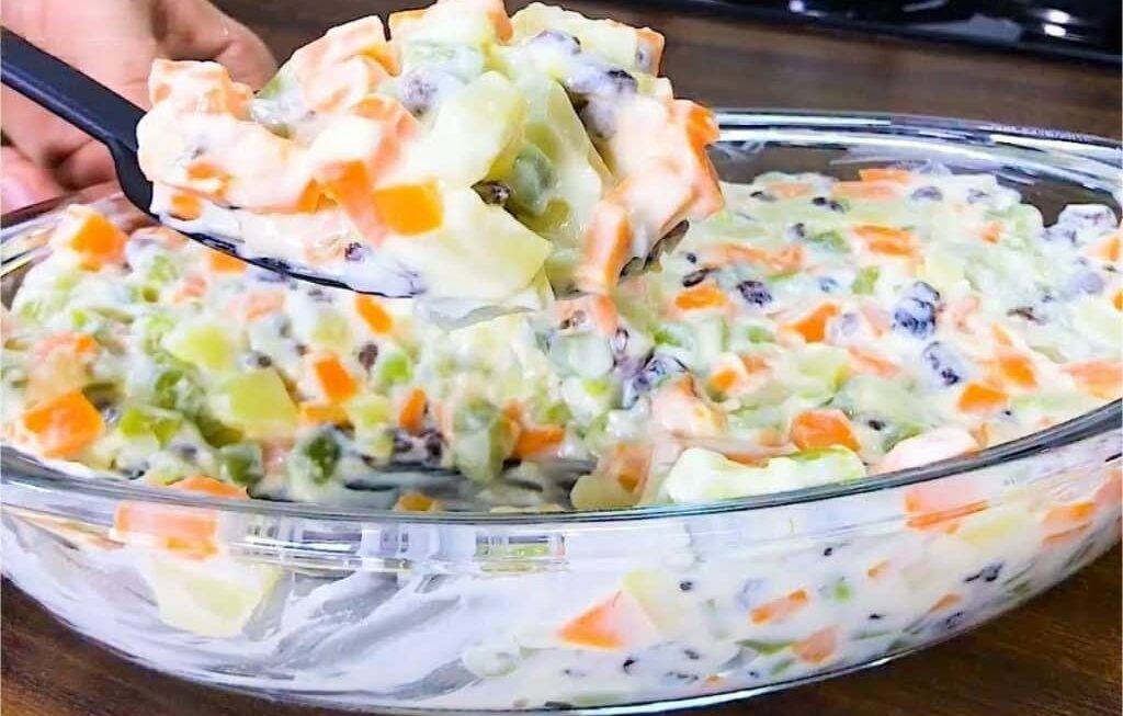 O preparo dessa receita de salada de natal é muito rápido, vapt-vupt! Mas antes, vejamos os ingredientes necessários para nossa receita: batatas, cenouras, vagem, sal, uvas-passas e maionese. Antes de tudo, é preciso cortar as batatas, as cenouras e a vagem em cubinhos. Feito isso, colocamos esses vegetais numa panela e cobrimos com água e adicionamos um pouco de sal. Agora é só levar ao fogo e deixar cozinhar até ficar al dente. Em seguida, escorremos e colocamos numa travessa. A esses ingredientes, juntamos uvas-passas e maionese. Enfim, é só misturar e está pronto!