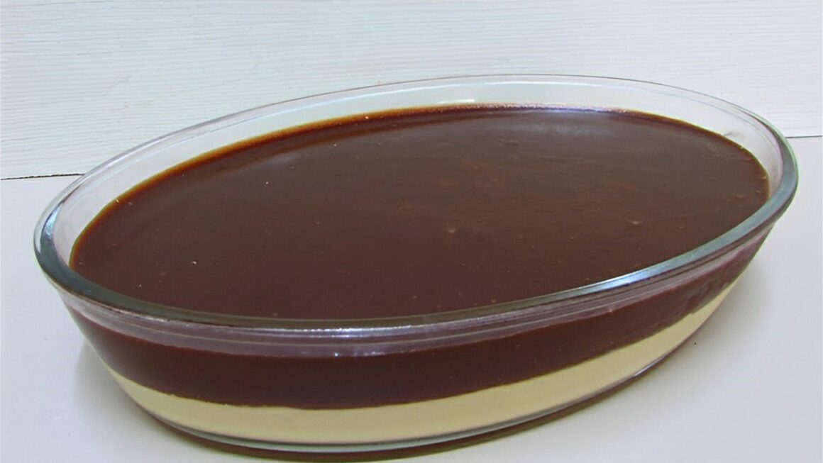 - Despeje por cima do creme na travessa e leve para gelar por cerca de 1 hora ou até ficar bem firme.