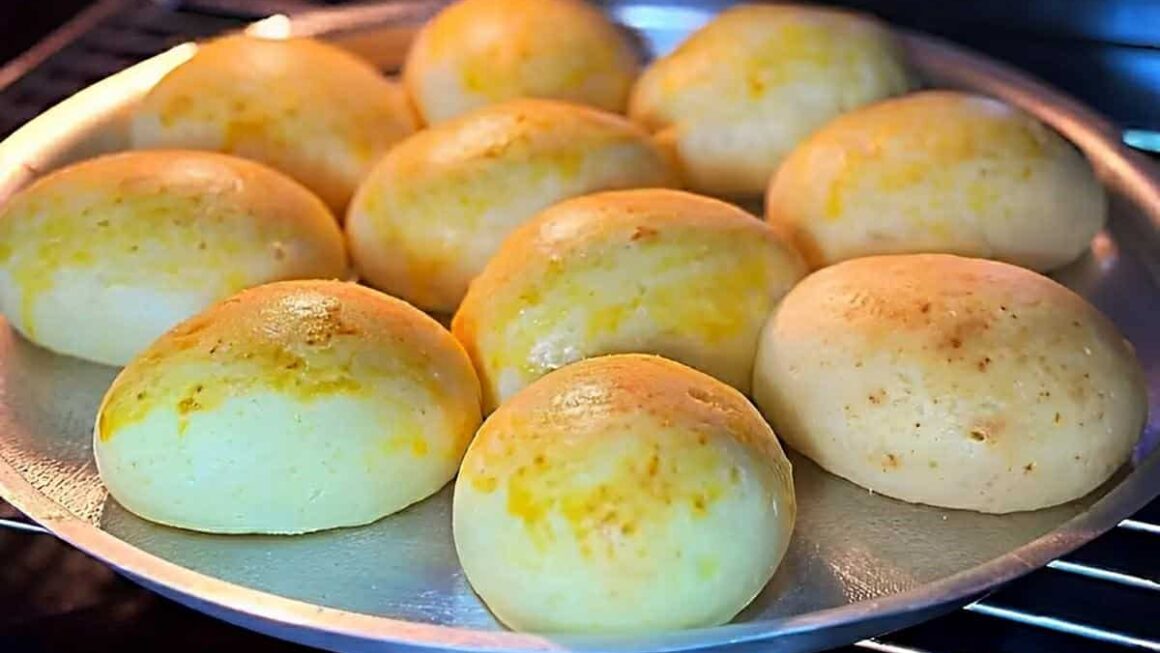 - Com as mãos untadas de manteiga, forme pequenas bolinhas, dando-lhes o formato de pãezinhos.
