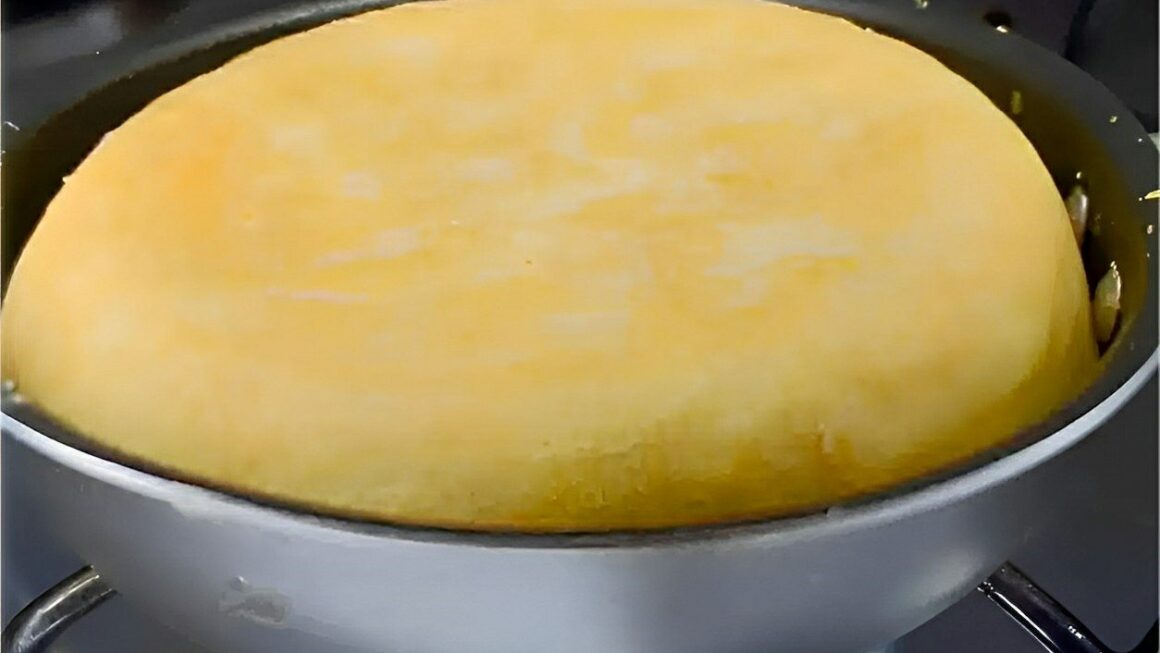 - Depois de 4 minutos, verifique se desgrudou da panela, e, para assar também do outro lado, vire o pão.
