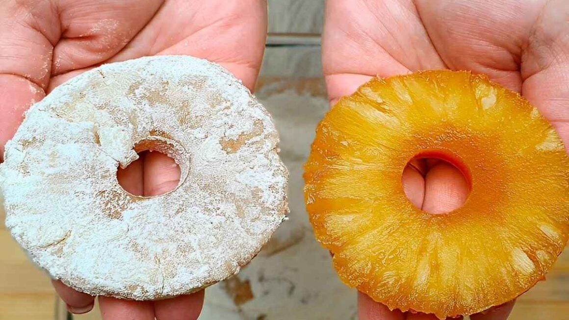 - Coloque a farinha de trigo e o fermento numa vasilha e misture bem. Adicione o abacaxi picado e empane nessa mistura. Reserve.