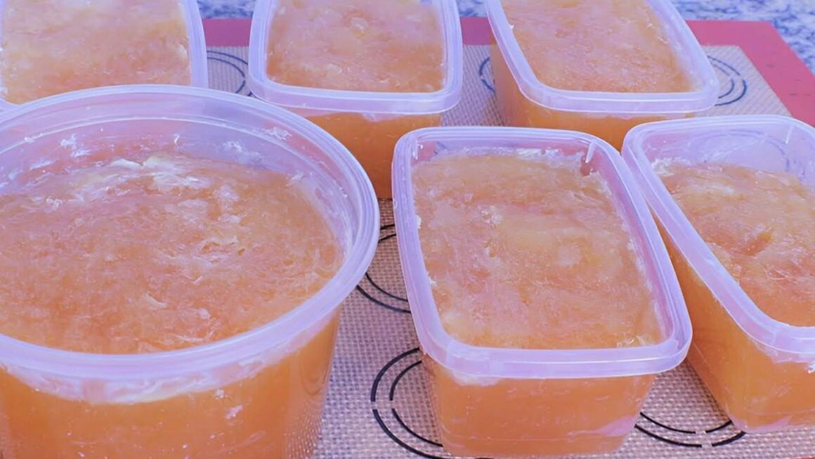 - Despeje o conteúdo da bacia em potes plásticos com tampa e aguarde 4 horas.