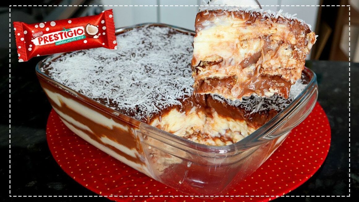 Cubra com o creme de chocolate. Leve à geladeira por 4 horas. Decore com coco ralado e sirva.