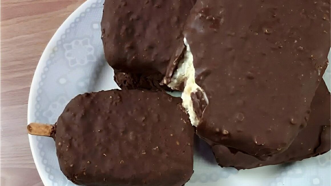 - Afunde cada picolé no chocolate, tire o excesso e coloque em uma travessa. Não é necessário secar, porque a casquinha de chocolate endurecerá imediatamente.