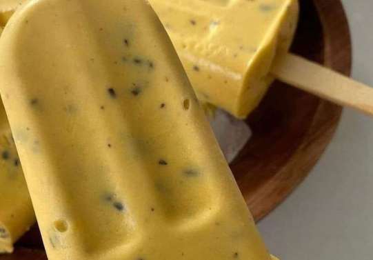 Este picolé combina a acidez do maracujá com a cremosidade do iogurte, resultando em uma sobremesa refrescante e equilibrada.