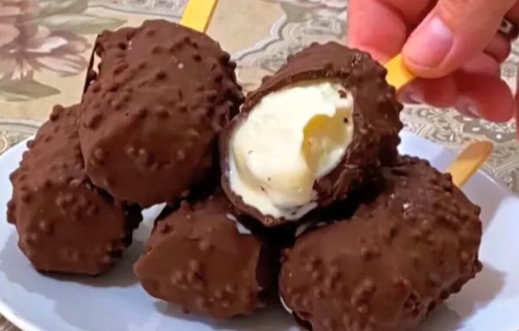- Agora, mergulhe cada picolé no chocolate derretido, permitindo que escorra o excesso.