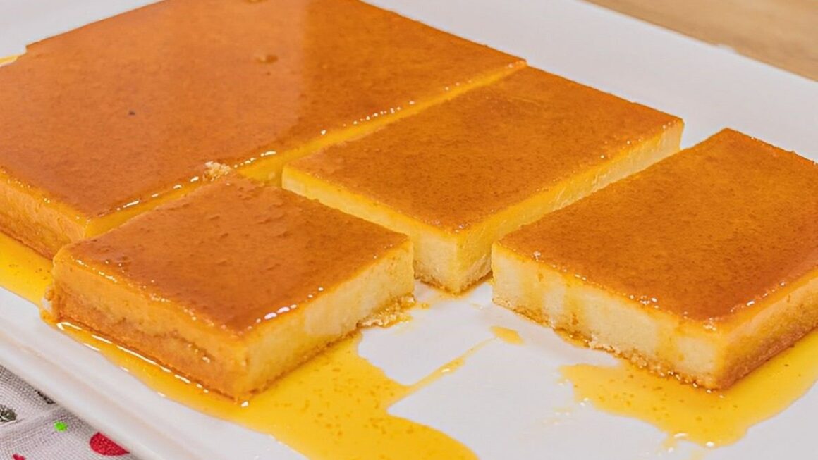 - Caramelize o fundo e as laterais de uma forma retangular (30 cm x 20 cm) e reserve.