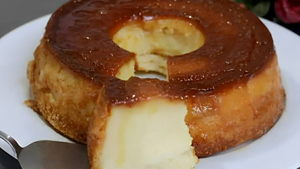 - Despeje essa mistura na forma caramelizada reservada e leve para assar em forno pré-aquecido a 180°C por cerca de 1 hora.