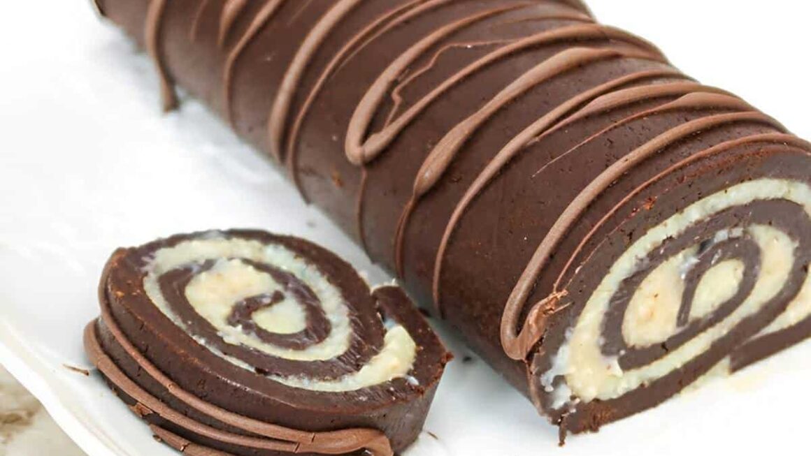 Para fazer rocambole prestigio iremos precisar de manteiga ou margarina, coco ralado e leite condensado. Vamos misturar os ingredientes do recheio do rocambole prestígio, levar ao fogo médio, mexendo sempre, até obter ponto de brigadeiro de colher. Para a massa do rocambole prestígio iremos precisar de leite em pó, chocolate 50% cacau, leite condensado e biscoito maisena de chocolate. Teremos que seguir o passo a passo tanto do preparo da massa quanto da modelagem e montagem do rocambole prestígio para obter um resultado perfeito. Depois disso vamos decorar com linhas de chocolate derretido e se deliciar com esse maravilhoso rocambole prestígio!