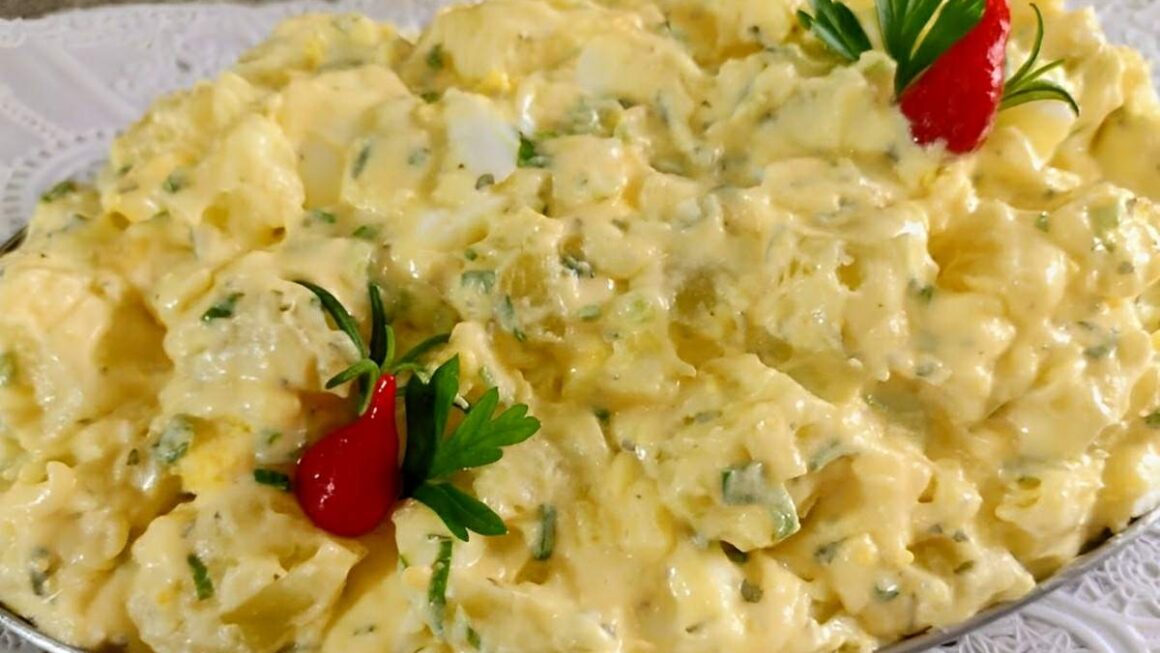 Salada de batata com ovos simples e deliciosa para servir no churrasco