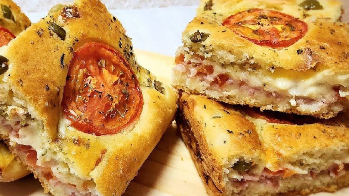 - Retire do forno, corte em quadrados e sirva essa delícia de salgado rápido!